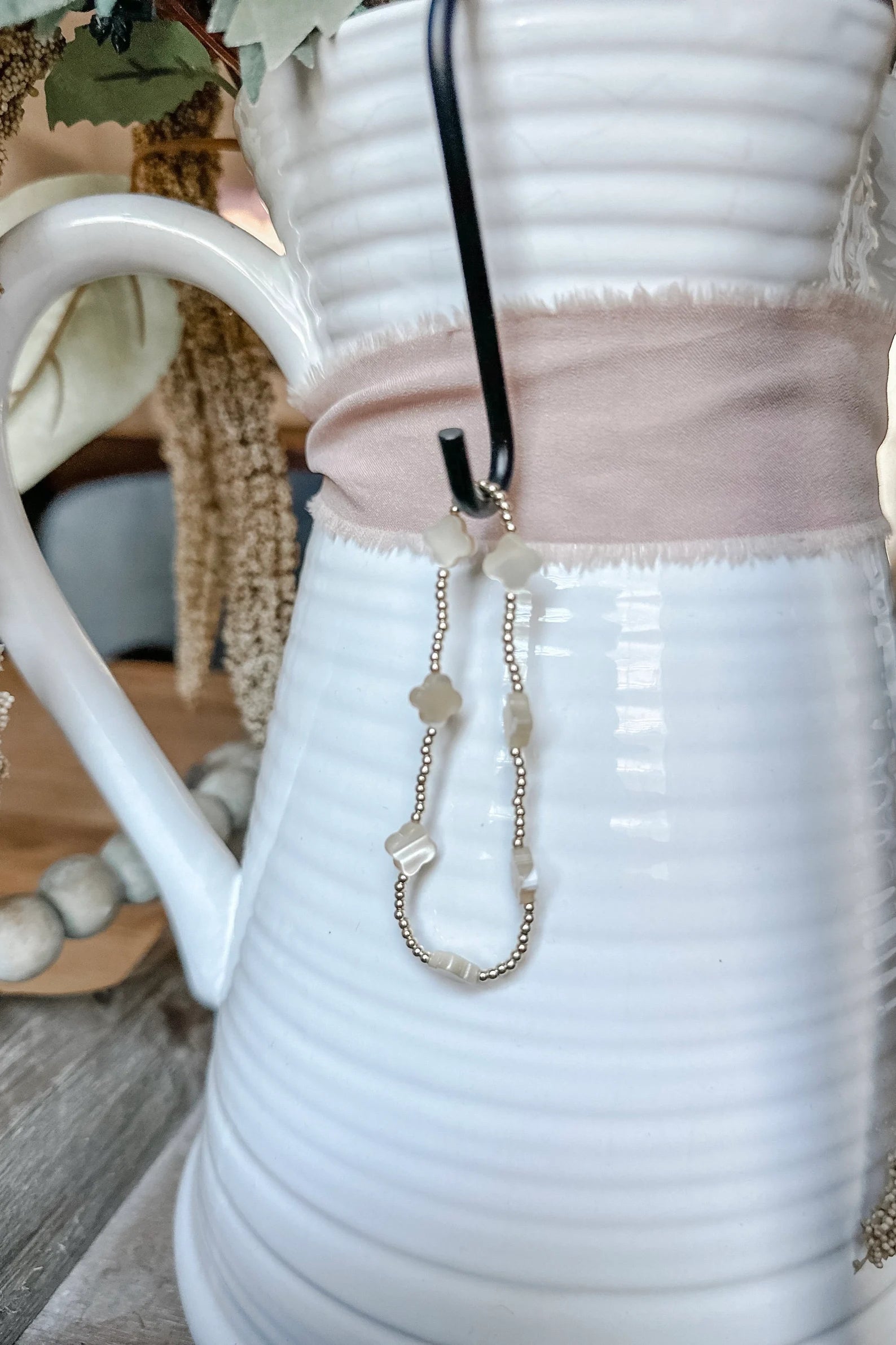 Crafted with shell beads and 2mm 14kt gold-filled beads, this bracelet is designed for worry-free wear — you can sleep, shower, and sweat in it without concern. Hand-beaded on durable, high-performance elastic, it offers a comfortable stretch for easy on-and-off. Standard size is 6.25", with other lengths available upon request.